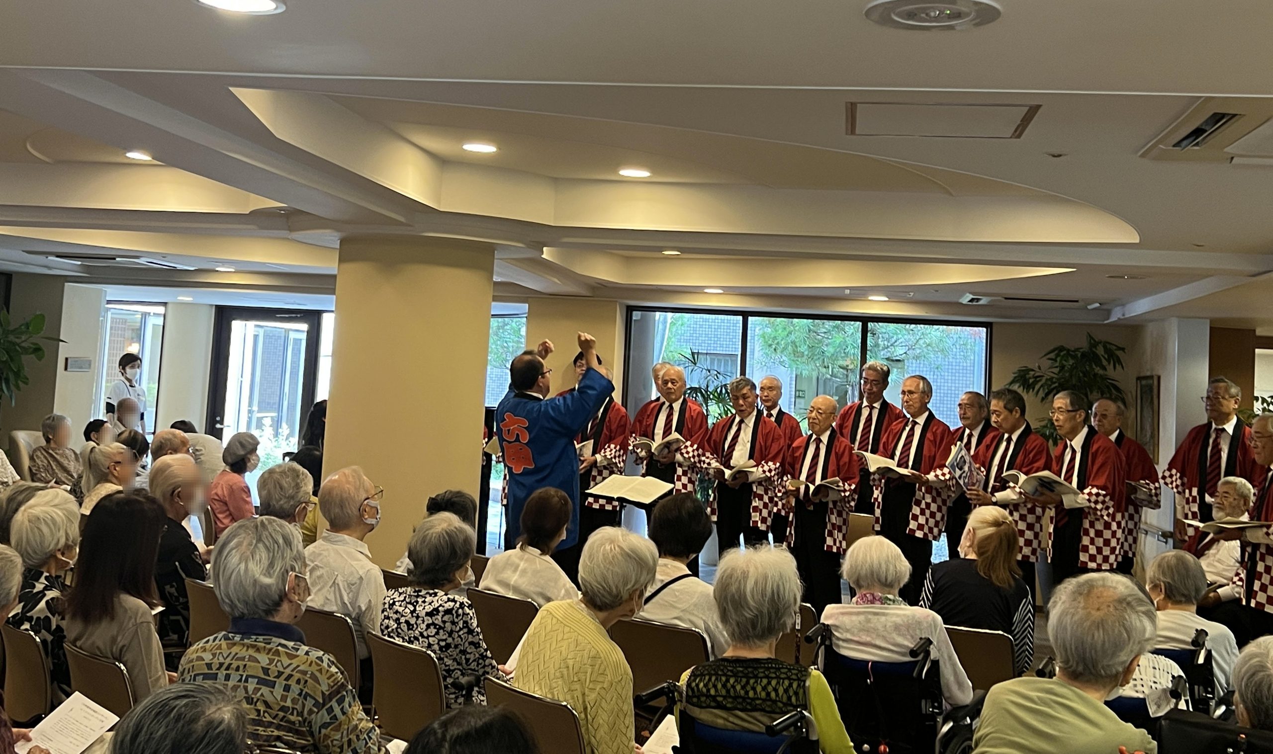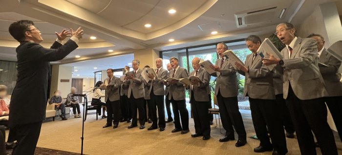 当日は満員御礼の大盛況。 顔馴染みの職員が出演するということもあり、ご入居者から「2週間前から楽しみにしていました」 「とっても素晴らしく深い歌声が沁みました」などとお喜びの声をいただきました。