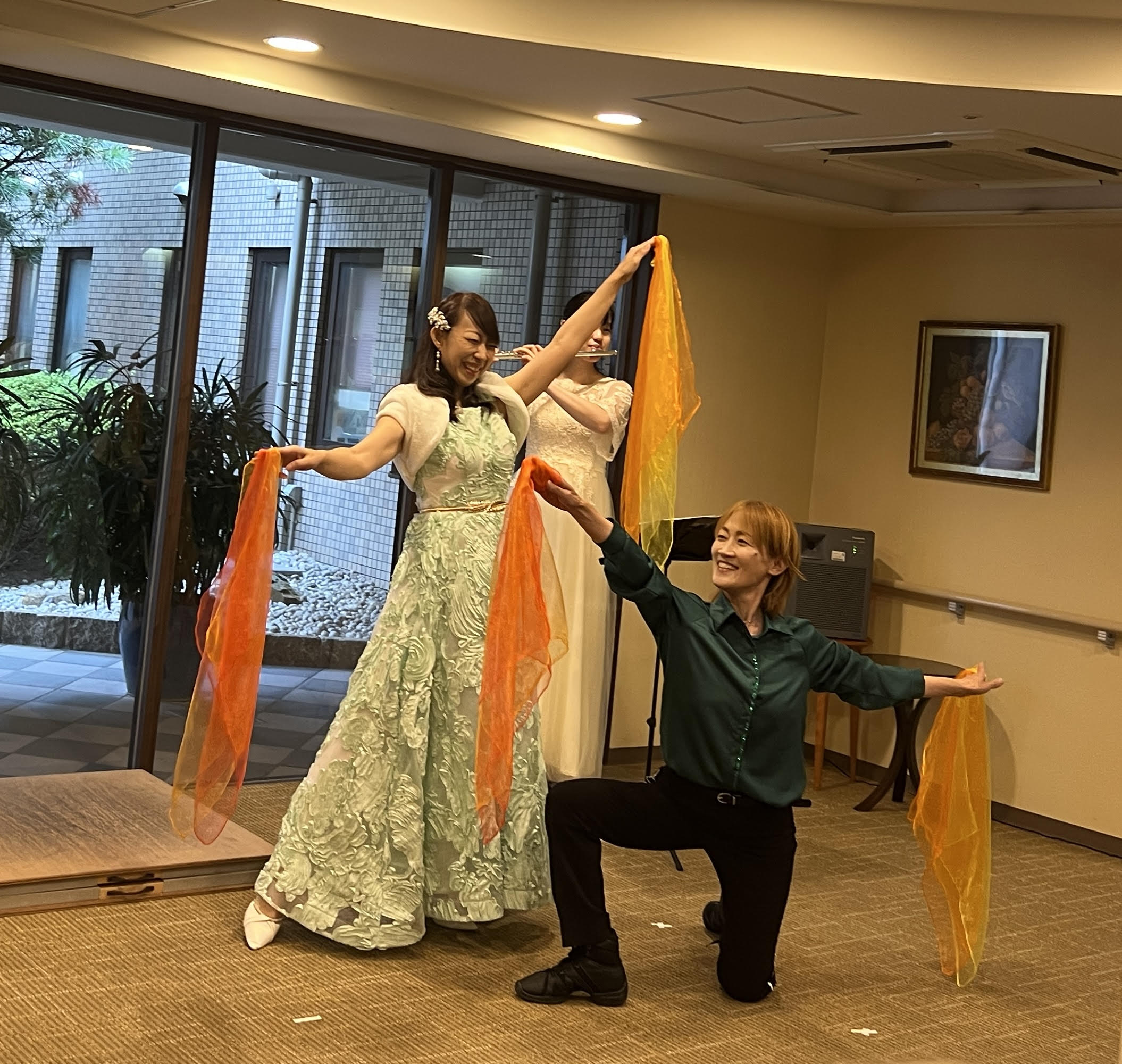 「珍しい楽器にも触れ、ダンスや歌と最後まで楽しく、心躍りました」 と入居者様のご満足のお声をいただきました。