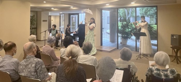 トラストガーデン宝塚では「歌う会」というサークルが毎月2回行われています。その講師の才田先生に、ご入居者から「先生の歌を皆さんに聴かせてあげてほしい!」という声がきっかけで、今回の「秋のコンサート」が実現しました。